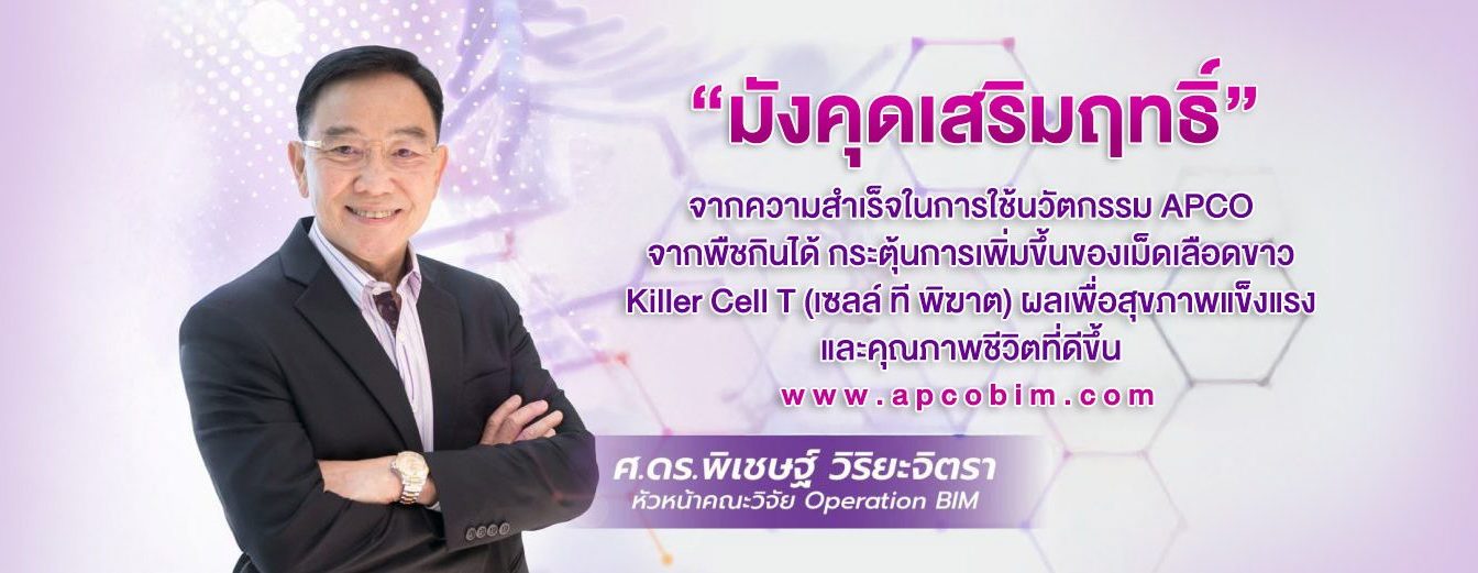 นวัตกรรมแอปโก้ (APCO) เป็นนวัตกรรมด้านการกระตุ้นภูมิคุ้มกันตัวเองเพื่อดูแลสุขภาพให้แข็งแรงเอง จากพืชกินได้ ได้แก่ มังคุด ถั่วเหลือง บัวบก งาดำ และฝรั่ง นักวิจัยไทยกลุ่ม Operation Bim ซึ่งประกอบด้วยนักวิจัยจากมหาวิทยาลัยเชียงใหม่ และมหาวิทยาลัยสงขลานครินทร์ พิสูจน์ในห้องทดลองแล้วว่า มังคุดเสริมฤทธิ์ สามารถกระตุ้นการทำงานของเม็ดเลือดขาว Th1 และ Th17 ให้มีประสิทธิภาพเพิ่มขึ้นหลายเท่า และไปกระตุ้น Killer T cell (เซลล์ ที พิฆาต) ให้จัดการเซลล์ร้าย และเซลล์แปลกปลอมที่เข้าสู่ร่างกายเรา ด้วยประสิทธิภาพสูง ประหยัด ปลอดภัย ไร้ผลข้างเคียง